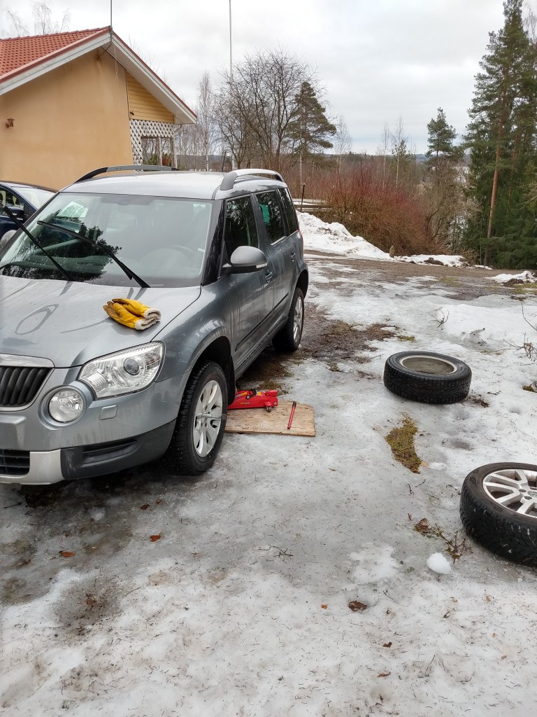 A car purchased in Finland should come with a second set of wheels ready to swap over depending on the season. If not, you need to purchase them, this may affect what you want to offer when buying the car or van. Late October everyone thinks about changing wheels over for winter. Tyre depots take on extra staff to cope with demand, which is high after an early snowfall. Pop-up wheel change locations appear so there’s plenty of competition, and prices start at €25 for all 4 wheels. Most big tyre depots offer the Tyre Hotel service. For an annual fee they change over and store your spare wheels until you next need them. Without the hotel service, you will need a place to store your own wheels. Most houses and apartments usually have somewhere but it needs to be exclusive to you to prevent theft. Some of us more mechanically minded like to change over our own wheels. A small trolley jack, a socket set, a telescopic handle for your socket, and a reasonably level hard standing is all that’s required. It takes 20 to 30 minutes, and you can check the vehicle brake pads at the same time, not forgetting to check the tyre pressures after months in storage.