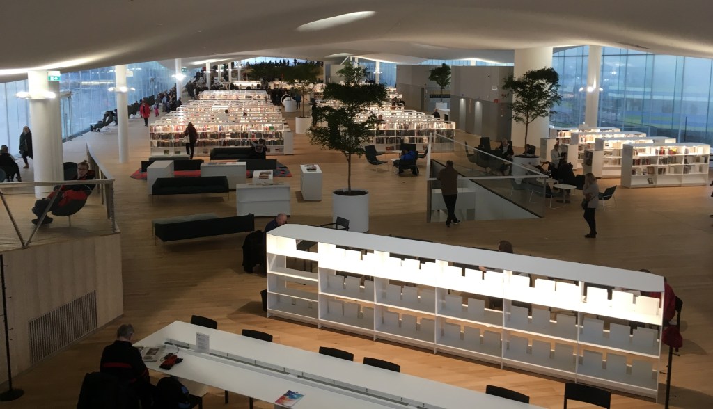 Libraries are an important part of social infrastructure in Finland. They are not the traditional quiet space with books. A Finnish library provides free access to borrowing not only books, but also power tools, musical instruments, laptop computers and other specialist tools. It is possible to reserve the use of 3-D and other specialist printers. Reserve a sound-proof room for practicing your musical instrument. There are plenty of spaces for study work and serious learning. There are usually dedicated play spaces for toddlers, a youth activity area with pool tables and computer gaming. Not forgetting the magazines and newspapers both physical and available on-line. My local library incorporated into the new Metro Station/shopping centre completed in 2023, always seems to be busy and provides a comfortable environment for all age ranges. Clever use of materials and textiles, curving book shelves and other design features makes the space feel spacious, yet homely. There are even comfortable arm chairs for reading. If you live in a nearby apartment block, this library must feel like another living room and continues the Finnish tradition of providing high quality and innovative public spaces. Another good example would be the main library, Oodi, in central Helsinki.